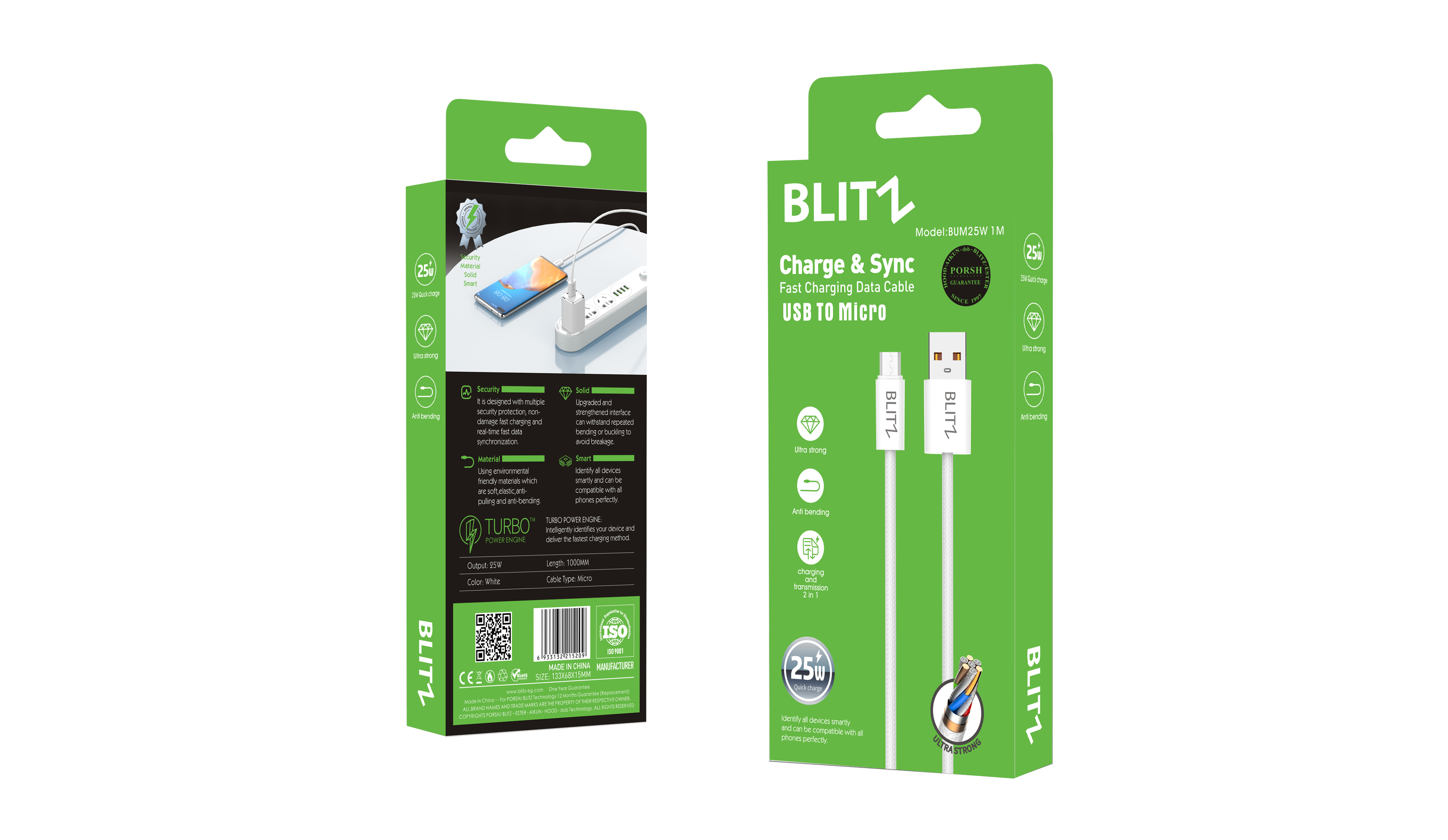 BLITZ BUM25W(USB/Micro)1M/Braided/Data/QC/1Y Replacement