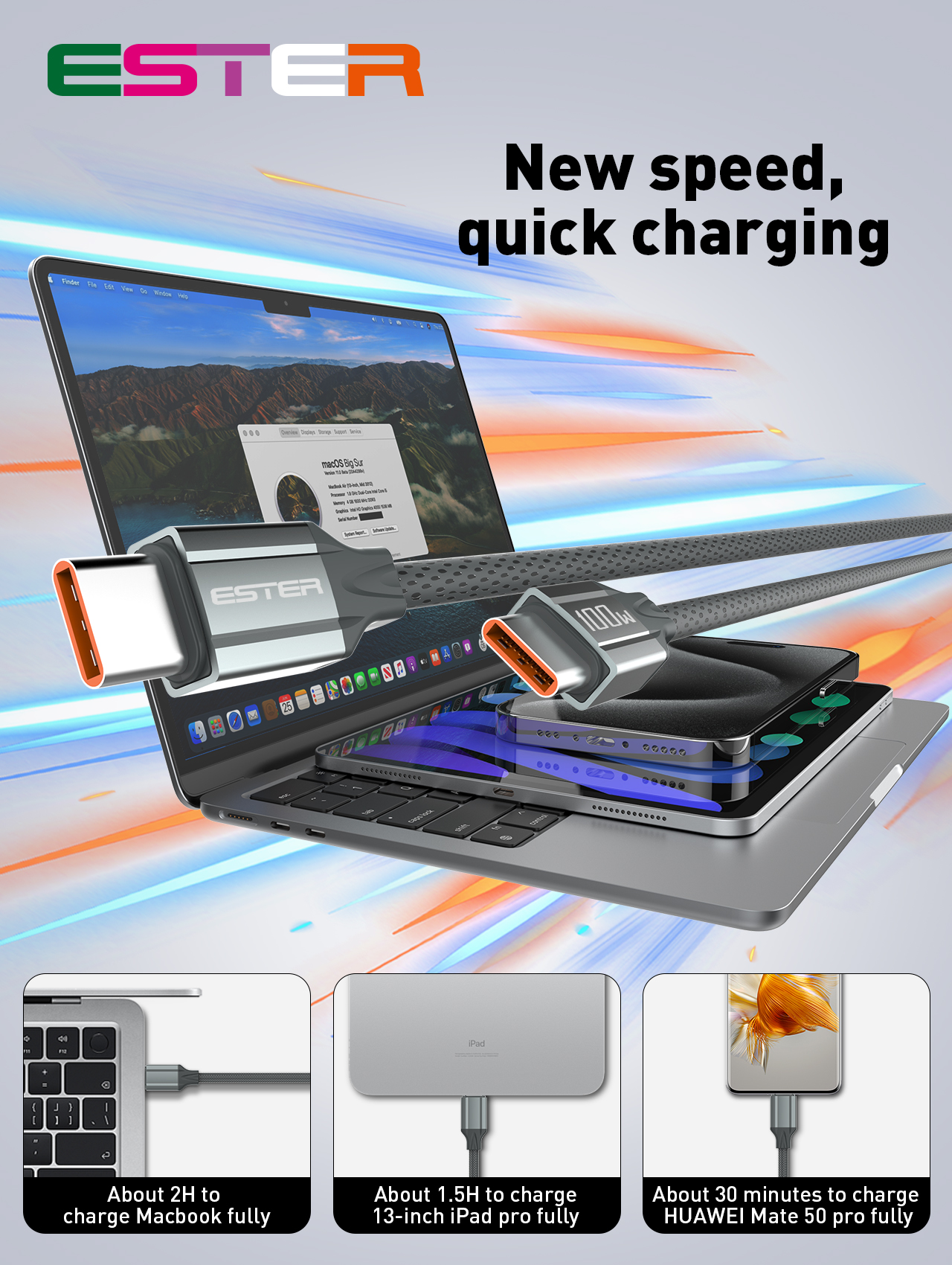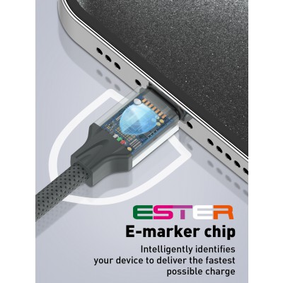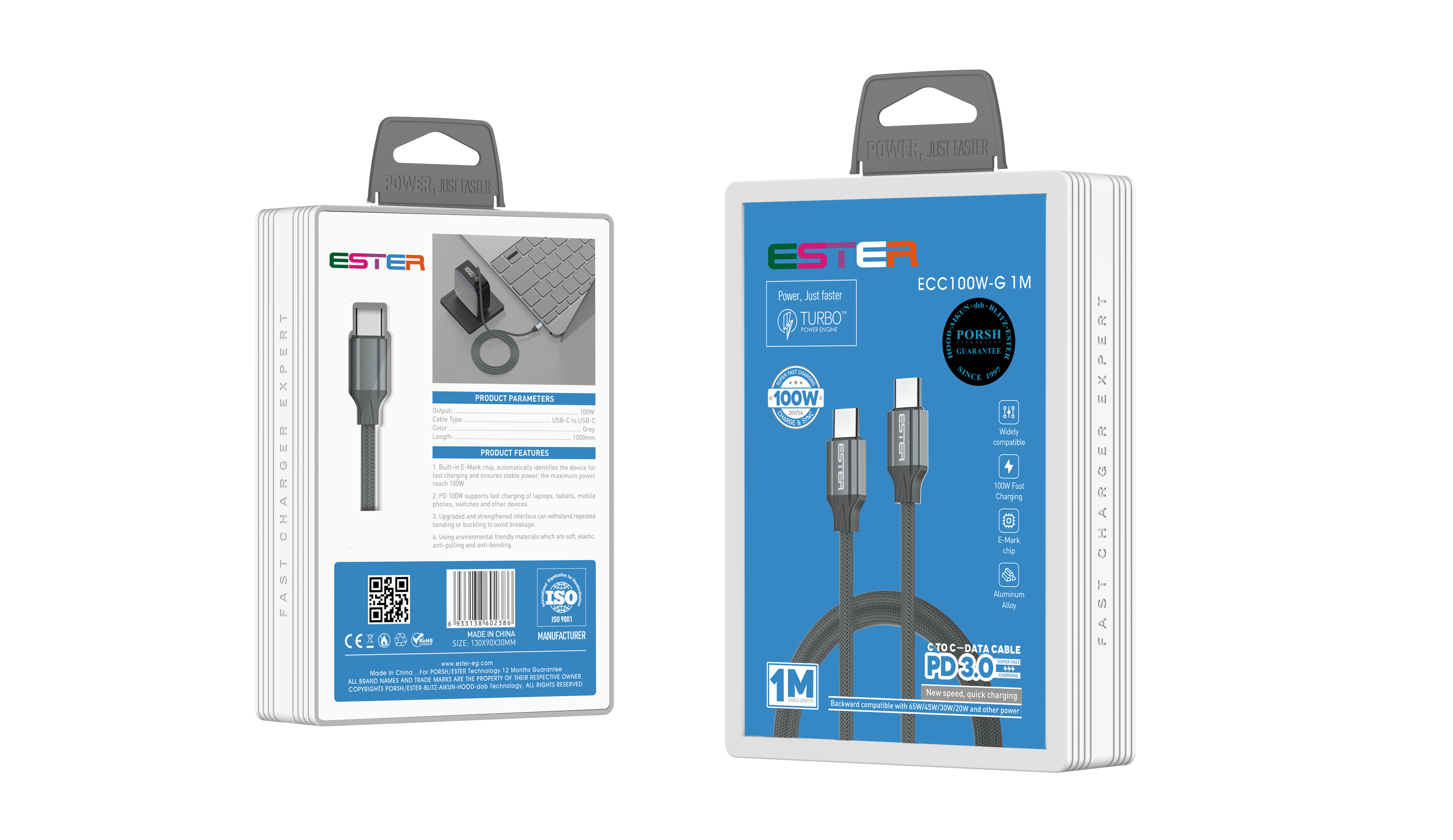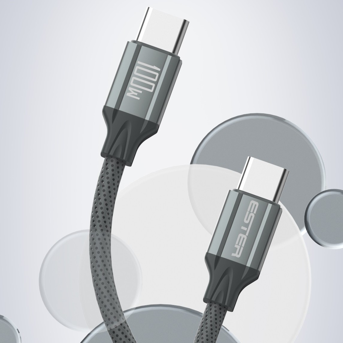 ESTER ECC100W(Type-C/Type-C)1M/TPE/Data/LapTop/QC/Gray/1Y Replacement