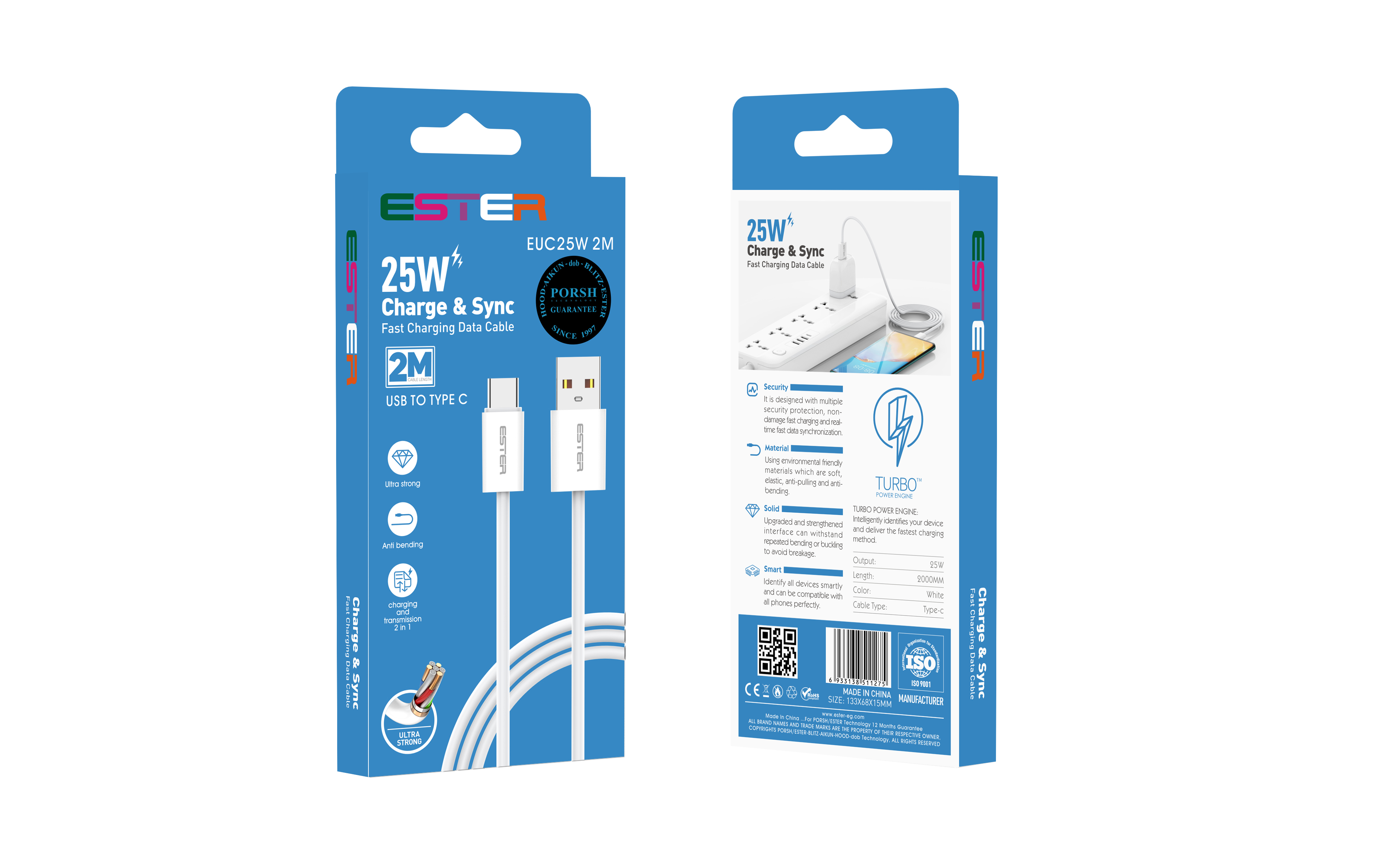 ESTER EUC25W(USB/Type-C)2M/PVC/Data/QC/1Y Replacement