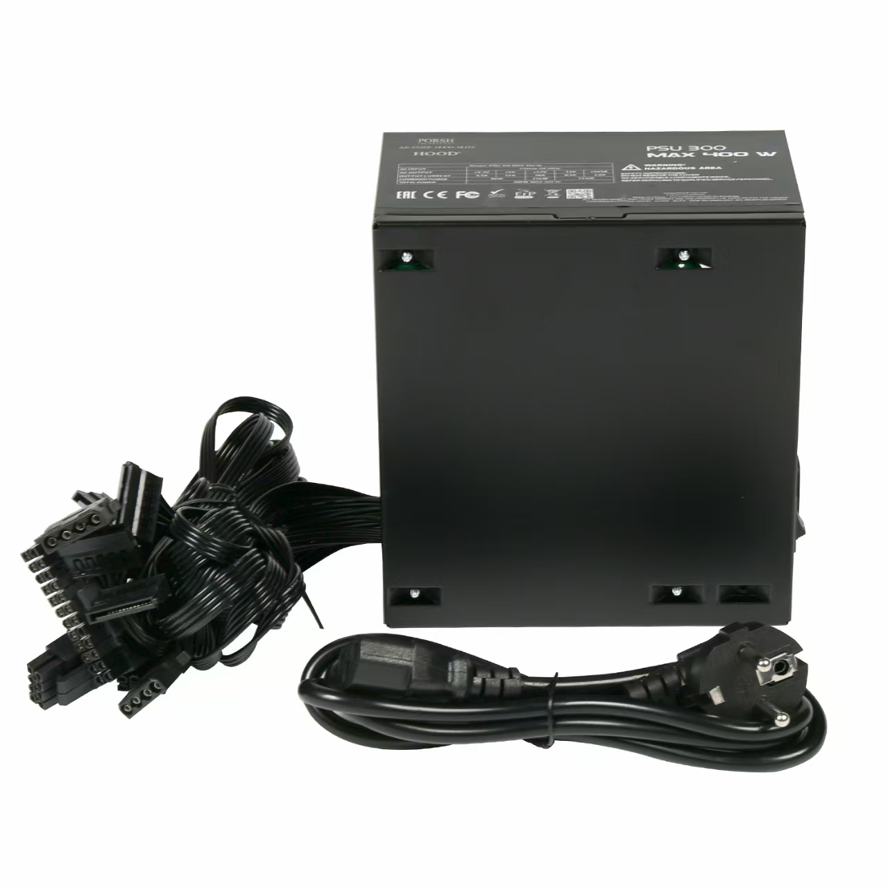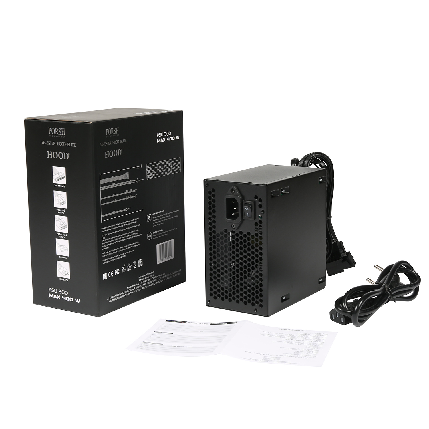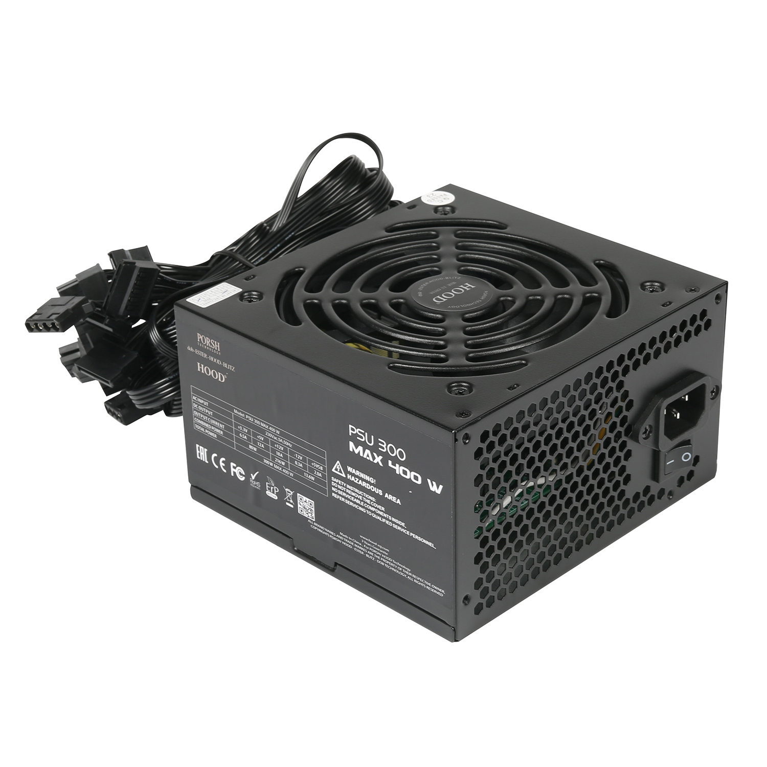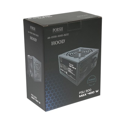 HOOD Power Supply 300 MAX 400W/FAN 12CM/4SATA/1FDD/1CPUP8(4+4)PIN/2MOLEX4PIN/1PCI-E6+2PIN/3Y